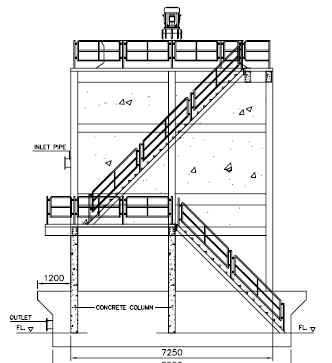 Partition wall beneath filler is provided in order to prevent outside wind blow water particles from the water basin. Other accessories such as overflow pipe system, overflow drain, makeup water system, control water level system, drain pipe system and strainer at inlet pipe are included. |