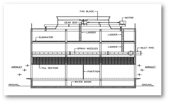 Model TSM: Induced draft counter flow cooling tower This Model is designed for heavy industry with sever working environment. Include: hot water + dirty with solids + acids